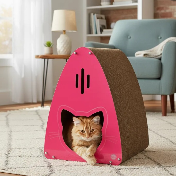 Arranhador Gatedral - Rosa fabricado com materiais Papelão e ACM. Dimensões do produto: 40.0cm (C) x 48.0cm (L) x 56.0cm (A). Peso do produto: 3300g. Categoria: Arranhadores.