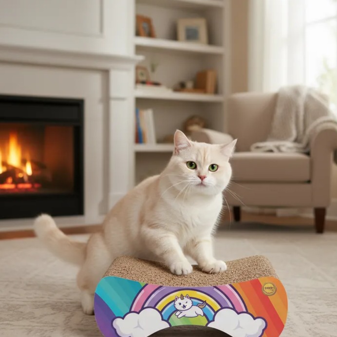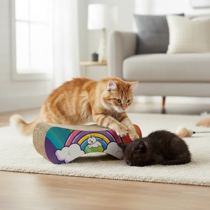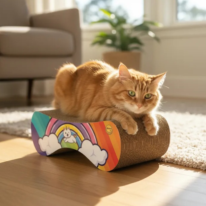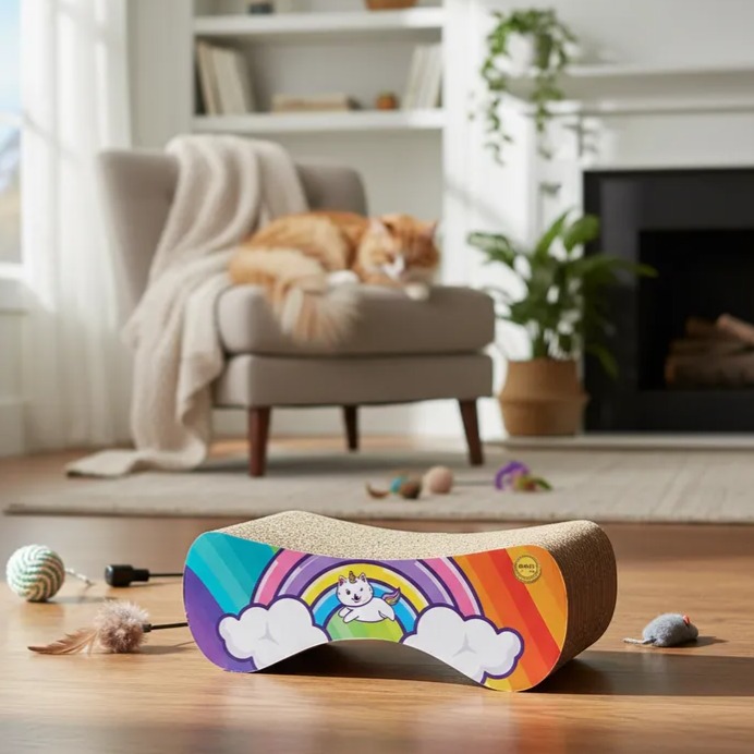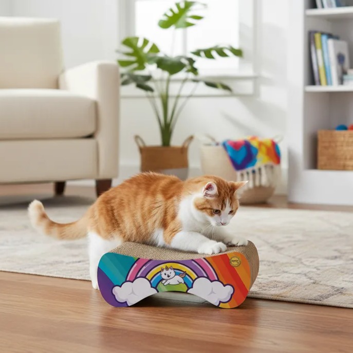 Arranhador Patrick - Arco-Íris fabricado com materiais Papelão e Mdf. Dimensões do produto: 42.0cm (C) x 27.0cm (L) x 15.0cm (A). Peso do produto: 1473g. Categoria: Arranhadores.