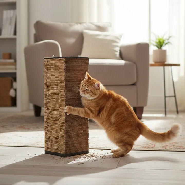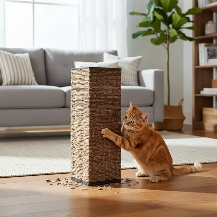 Arranhador Quina fabricado com materiais Papelão e Mdf. Dimensões do produto: 20.0cm (C) x 20.0cm (L) x 60.0cm (A). Peso do produto: 1030g. Categoria: Arranhadores.